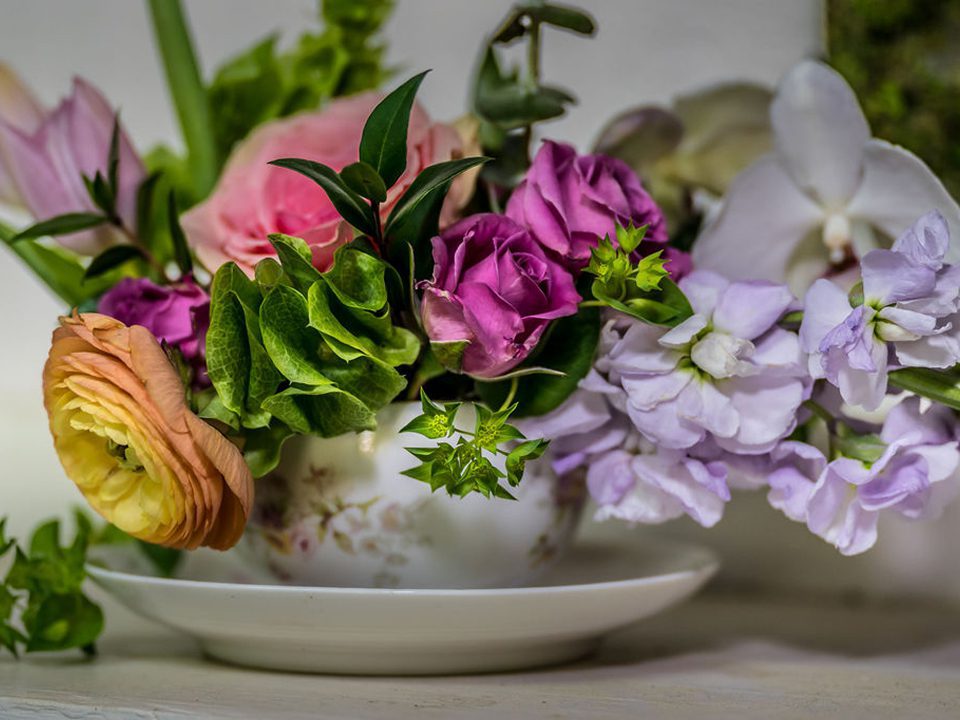 A mix of flowers and greenery to coordinate with the Tea Cup.Price range: $55.00 through $75.00 Order Now This product has multiple variants. The options may be chosen on the product page -